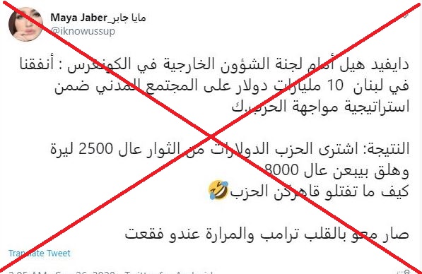 غير ان هذا الادعاء مضلل وخاطئ، اذ ان ما صرّح به هيل في 24 أيلول 2020، هو ان "الولايات المتحدة أمنت للبنان، على مرّ الاعوام، 10 مليارات دولار دعما له، في الخدمات الامنية (اي الجيش والامن الداخلي) من جهة، ولمنظمات غير حكومية من جهة أخرى، من أجل التنمية الاقتصادية والدعم الانساني".