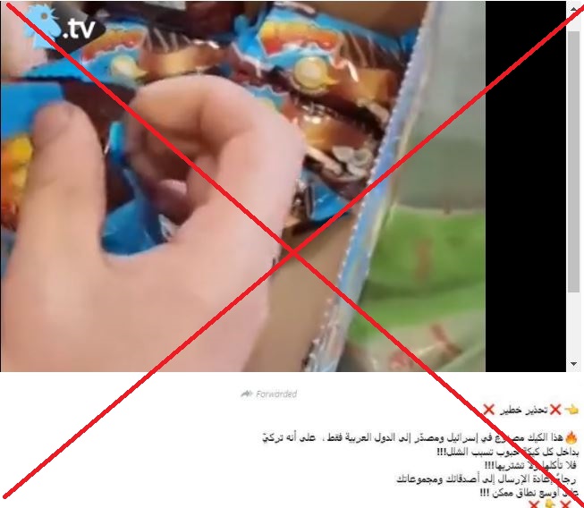 المزاعم المرفقة بالفيديو ان "هذا الكيك مصنوع في إسرائيل، ومصدّر إلى الدول العربية فقط على أنه تركيّ. وبداخل كل كيكة حبوب تسبب الشلل"، مزاعم خاطئة، ذلك ان هذا الكيك من ماركة Luppo (لوبو)، تركي الصنع، ولا يُصدَّر الا الى العراق، بتأكيد من الشركة المصنعة Sölen. ثانيا، ثمة قرائن تشكك فعليا في صحة هذا الفيديو وبمزاعمه، بما يرجح حصول تلاعب مقصود بالكيك، لسبب او لآخر.