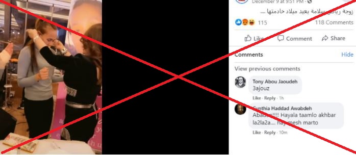 بالطبع لا. الفيديو الذي تناقله مستخدمون لوسائل التواصل الاجتماعي بمزاعم أنه يظهر "زوجة رياض سلامة"، حاكم مصرف لبنان، "في عيد ميلاد خادمتها"، يظهر سيدة الأعمال وخبيرة التجميل "دينا سوبر ماجيك"، خلال حفلة عيد ميلاد "مارشا".