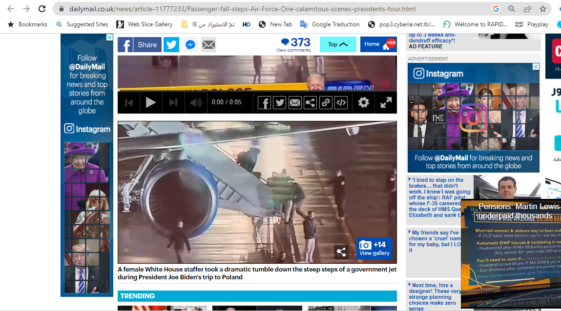 سقط الرئيس الأمريكي جو #بايدن على سلم الطائرة قبل قليل بعد هبوطه في بولندا