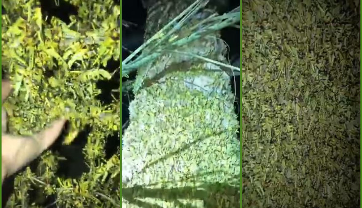 الوقائع: 30 ثانية فقط مدة الفيديو. المشاهد الليلية تكشف اسرابا من الجراد غزت اشجارا. منذ ساعات، تكثّف التشارك في الفيديو، عبر صفجات وحسابات، في الفايسبوك (هنا، هنا، هنا، هنا، هنا...)، وتويتر (هنا، هنا، هنا، هنا، هنا...)، بمزاعم ان "الجراد وصل الى عرسال"، بينما زعم مستخدمون آخرون ان "الأسراب الضخمة من الجراد وصلت الى مناطق ريف حماه بسوريا" (هنا)، وايضا "تتمركز على الحدود السورية- العراقية" (هنا، هنا).