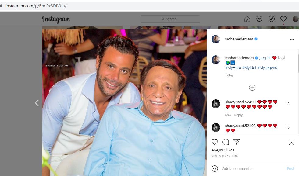 وإليكم مقارنة بين الصورة المتلاعب بها (أدناه إلى اليمين) والصورة الأصليّة من حساب محمد إمام (إلى اليسار).