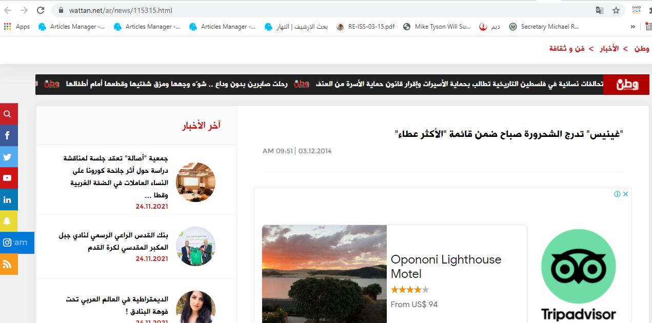وفي وقت بقي خبر تسجيلها في موسوعة غينيس للأرقام القياسية مجرد شائعات ترددت منذ عام 2014 (هنا)، جدّد موقع اخباري بالانكليزية نشره في 4 ايار 2021 (هنا).