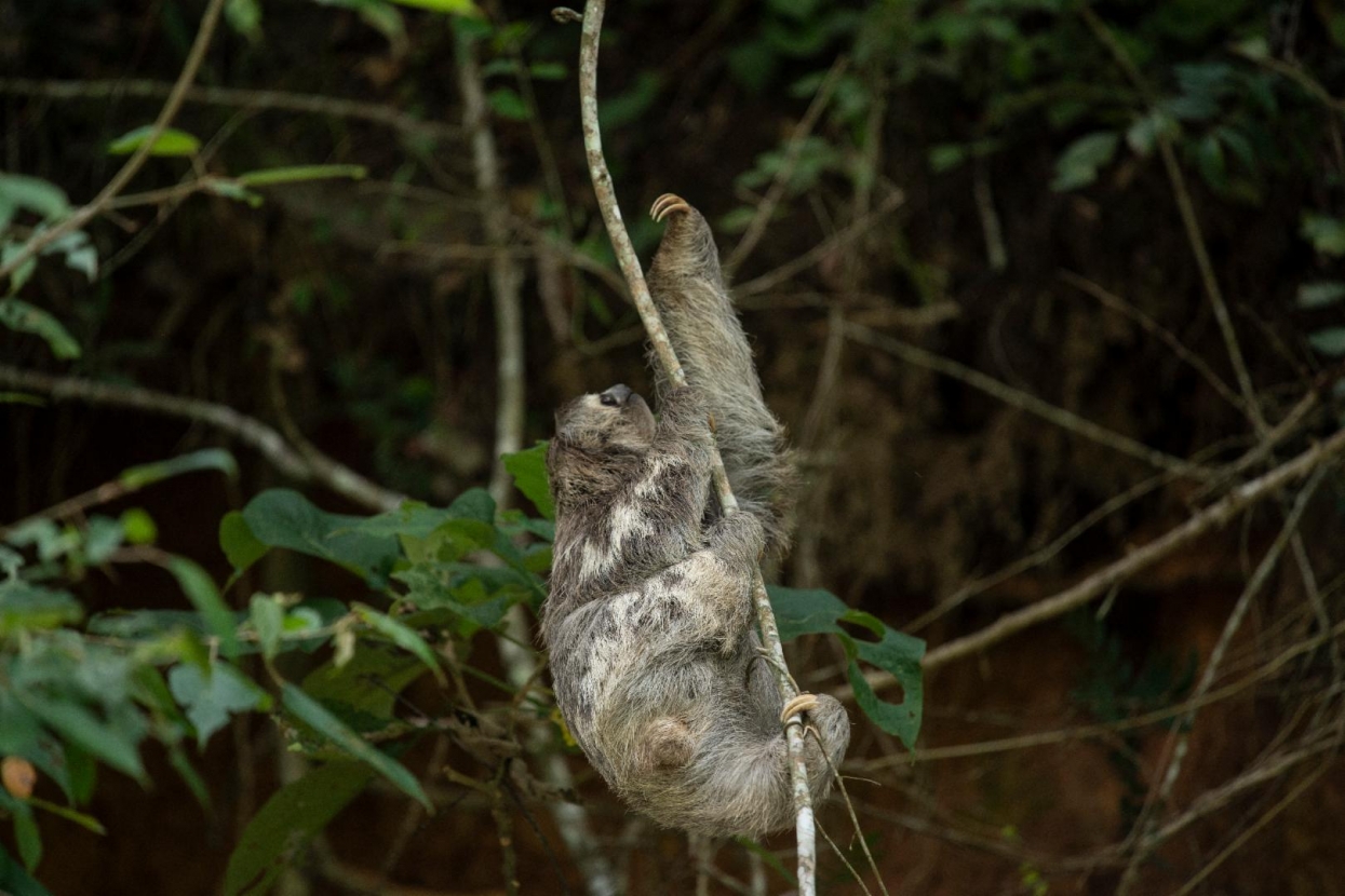 صورة لحيوان الكسلان معلقاً على بقدميه الخلفيتين على الأشجار في فنزويلا بتاريخ 23 أيلول 2021 ( ا ف ب / يوري كورتيز)
