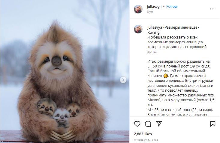 آلاف المشاركات والتعليقات حصدتها صورة على مواقع التواصل الاجتماعي ادعى ناشروها أنها لحيوان حقيقي يُعرف بأنه "كسول وينام 18 ساعة يومياً ويوزع الابتسامات عندما يستيقظ". إلا أن هذا الادعاء غير صحيح. فالصورة لدمية من تصميم فنانة روسية.
