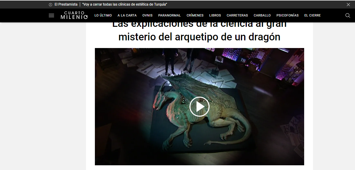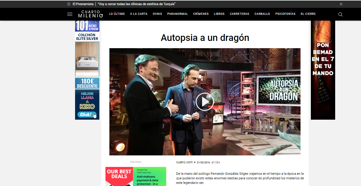 وقد نشرت صفحة البرنامج في الفايسبوك فيديو انجاز مجسم التنين (هنا) في 22 شباط 2016 (هنا، هنا ايضا). ويبيّن البحث فيها ان البرنامج بثّ، في 21 شباط 2016، حلقة بعنوان "تشريح تنين" (هنا، هنا). و"بمساعدة عالم الحيوانات فرناندو غونزاليس، نسافر بالزمن إلى الوراء، إلى الوقت الذي كان من الممكن أن توجد فيه هذه الوحوش الهائلة، لنتعلم بعمق أسرار هذا الكائن الأسطوري".