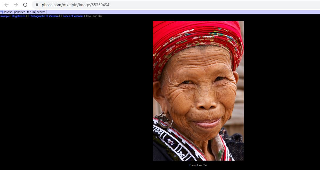 وكتب mkelpie تحت الصورة Dao- Lao Cai، اي داو نسبة الى اثنية داو، ولاو كاي نسبة الى احدى المحافظات الفيتنامية، من دون أن يذكر تفاصيل عن المرأة. ومع أنه لم يحدد ايضا تاريخا لالتقاط الصورة، الا انه أمكن الملاحظة ان تعليقا تركه أحد المتابعين له يعود الى عام 2004 على الأقل.