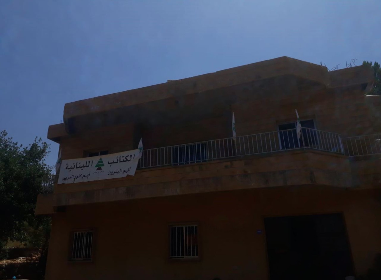 وأوضح أن "الصور الحقيقية (ادناه) تظهر بيت الكتائب في الطبقة العليا من بناء في بلدة كفور العربي في البترون، وليس في الطبقة السفلى كما في الصورة المتناقلة"، مشيراً الى أن "الحزب استأجر الطبقة العليا، بينما أجّر المالك الطبقة السفلى لآخرين".