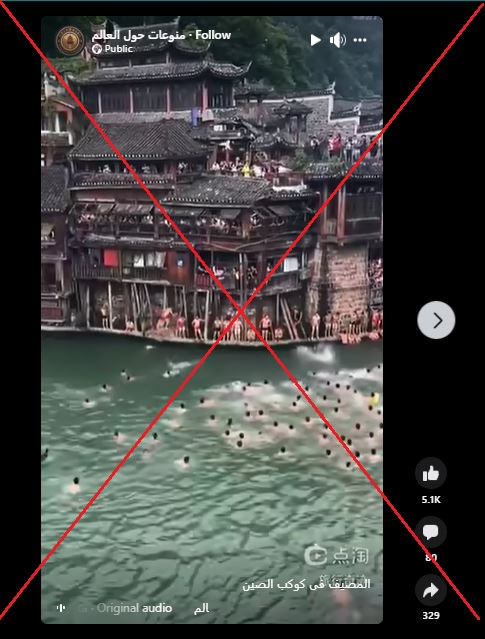 يتداول مستخدمون لمواقع التواصل الاجتماعي مقطع فيديو يدّعي ناشروه أنّه لمصيف في الصيف يبدو مكتظاً جداً. إلا أنّ الادعاء غير صحيح. فهذا الفيديو يصوّر في الحقيقة مهرجاناً صينياً تقليديّاً يطلق عليه اسم مهرجان قوارب التنين.