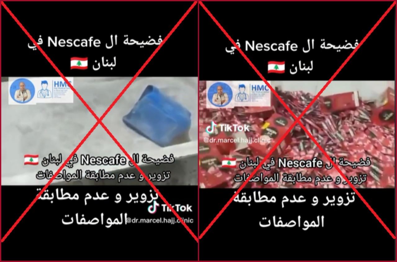 بعنوان "فضيحة النسكافيه في لبنان"، يتناقل مستخدمون لوسائل التواصل الاجتماعي فيديو بمزاعم انه يظهر "تزويرا للنسكافيه في أحد المصانع في لبنان". صحيح أنّ هذه المشاهد حقيقية، الا انها مصوّرة في مصنع غير مرخص له بمدينة طنطا جنوب شرق الإسكندرية بمصر، ضبطته أخيرا الأجهزة الأمنية بمديرية أمن الغربية وكان يصنّع نسكافيه "مغشوشا أو مقلدا"، وفقاً لتقارير اعلامية مصرية. FactCheck#