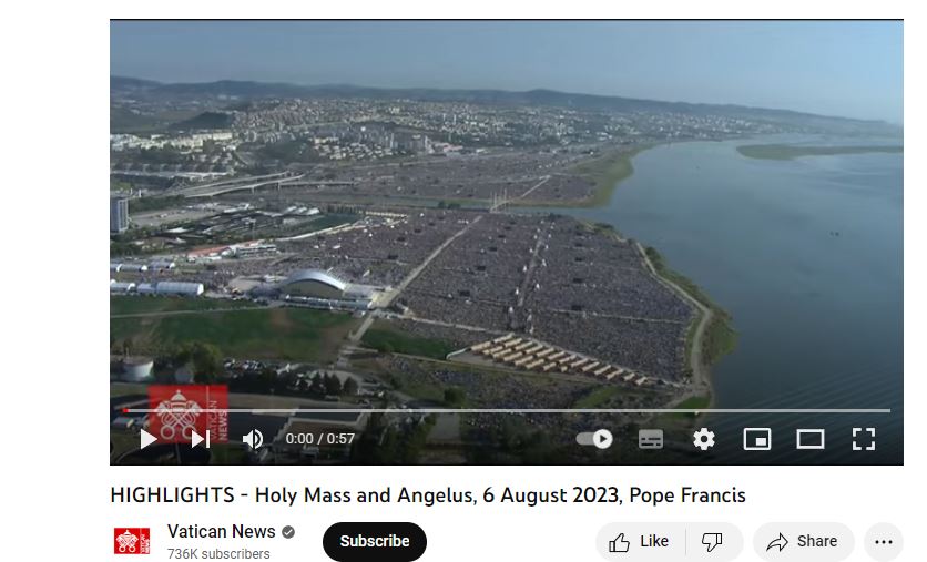 مشاهد جوية ولقطات نشرها الفاتيكان للقداس. ويتبيّن ايضا بمشاهدتها ان البابا فرنسيس حيا الحشود، في ختام القداس، بينما بقي جالسا على كرسيه المتحرك (2.39)، قبل ان يغادر.