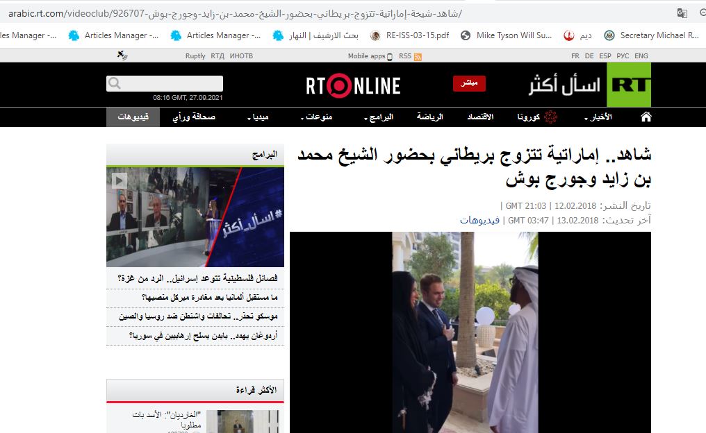 كذلك، نشرت يومذاك مواقع اخبارية عربية عدة تقريراً عن حقيقة الفيديو، بعد انتشار المزاعم الخاطئة حوله (هنا، هنا، هنا، هنا، هنا، هنا، هنا، هنا...). "بن زايد يبارك زواج إماراتية من بريطاني"، و"إماراتية تتزوج من بريطاني بحضور الشيخ محمد بن زايد وجورج بوش"، وفقا لعناوين (وهنا، هنا ايضا).