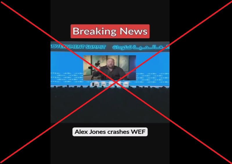 "أليكس جونز المتطرّف يخرق بث القمّة العالميّة للحكومات في دبي"؟ إليكم الحقيقة FactCheck#