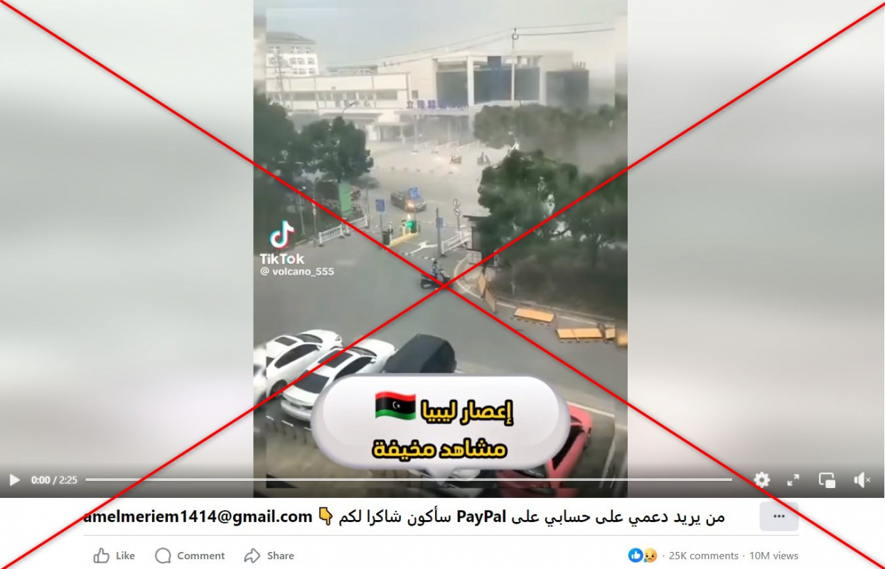 منذ وقوع الفيضانات المدمّرة في الشرق الليبي ومواقع التواصل الاجتماعي تعجّ بالصور والمقاطع المضلّلة التي تزعم زيفاً أنّها لمشاهد صوّرت خلال الكارثة أو بعدها، وآخرها فيديو زعم ناشروه أنّه لمدينة درنة خلال الفيضانات. إلا أنّ الفيديو في الحقيقة مؤلّف من مشاهد قديمة ومن دولٍ مختلفة.