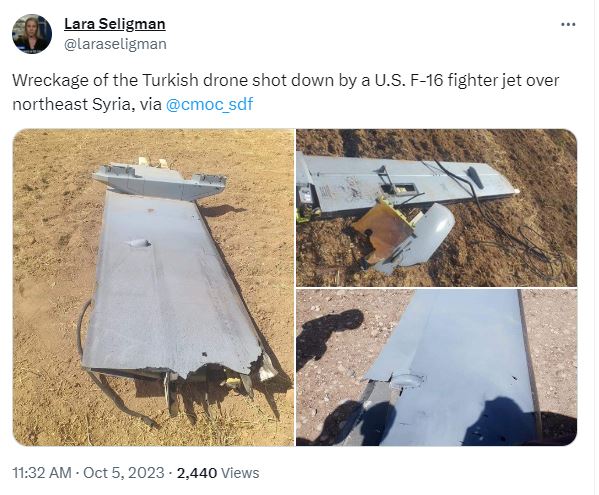 An “Anka-S” Attack Drone with the Turkish Air Force, which was on a Combat Mission against PKK Forces in Northeast Syria, was Shot Down today by a U.S. Air Force F-16 after the Drone entered a Restricted Airspace near a U.S. Operations Base in the Region and was deemed a Threat.… pic.twitter.com/TZmOoZhHk6