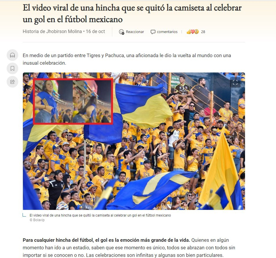 وقد اقتطعت من فيديو يظهر مشجّعة مكسيكيّة وهي تخلع قميصها احتفالاً بهدف الفوز لنادي "Tigres" على نادي "Pachuca" في الدوري المكسيكيّ لكرة القدم.