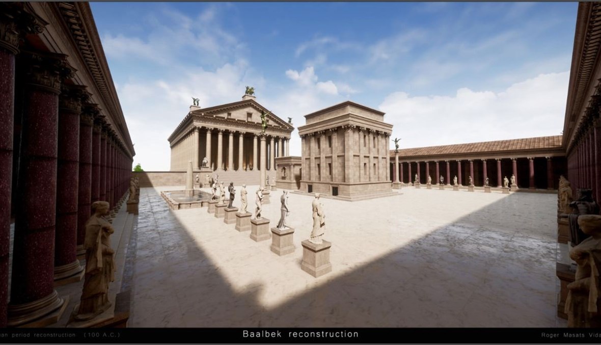 كيف أنجز اعادة بناء بعلبك افتراضيا؟ أجاب: "لقد فعلت ذلك باستخدام برنامج الرسوم ثلاثي الأبعاد الخاص بي والاستخلاص (Rendering)، وهو البرنامج ذاته المستخدم لإنشاء ألعاب الفيديو".
