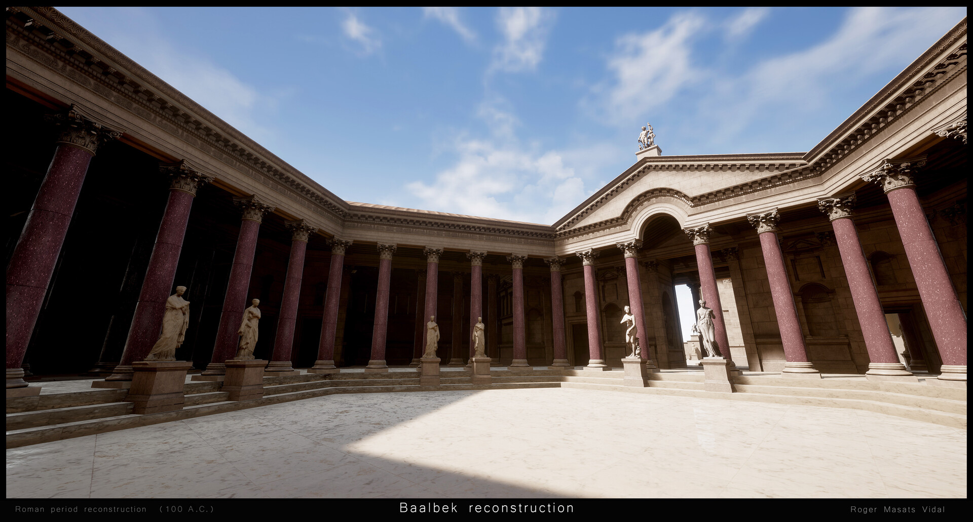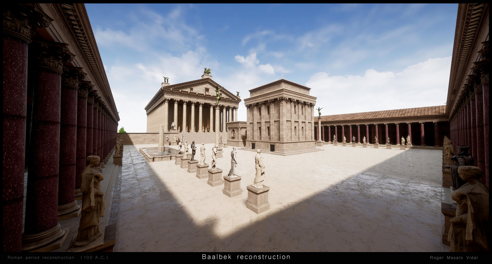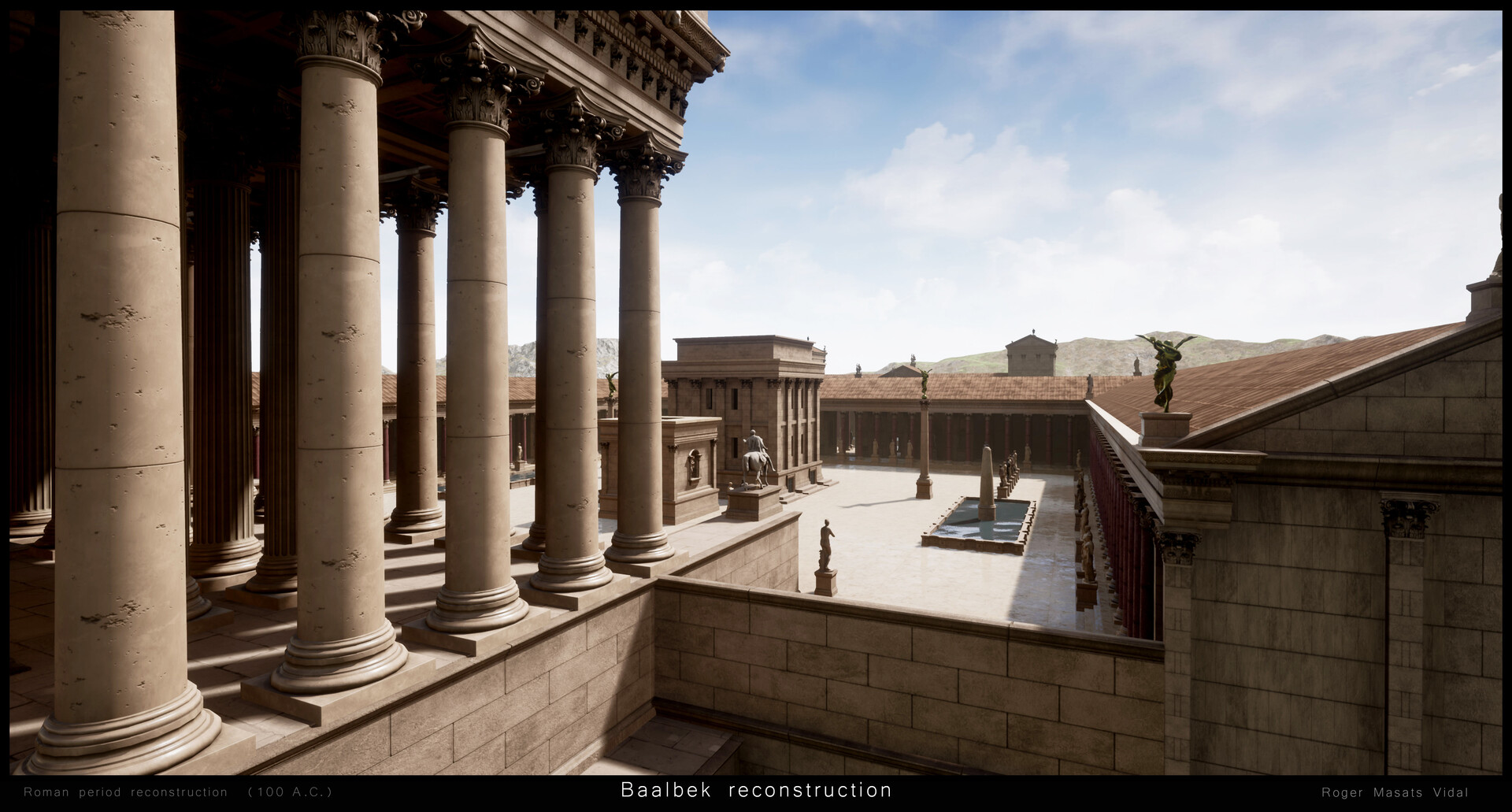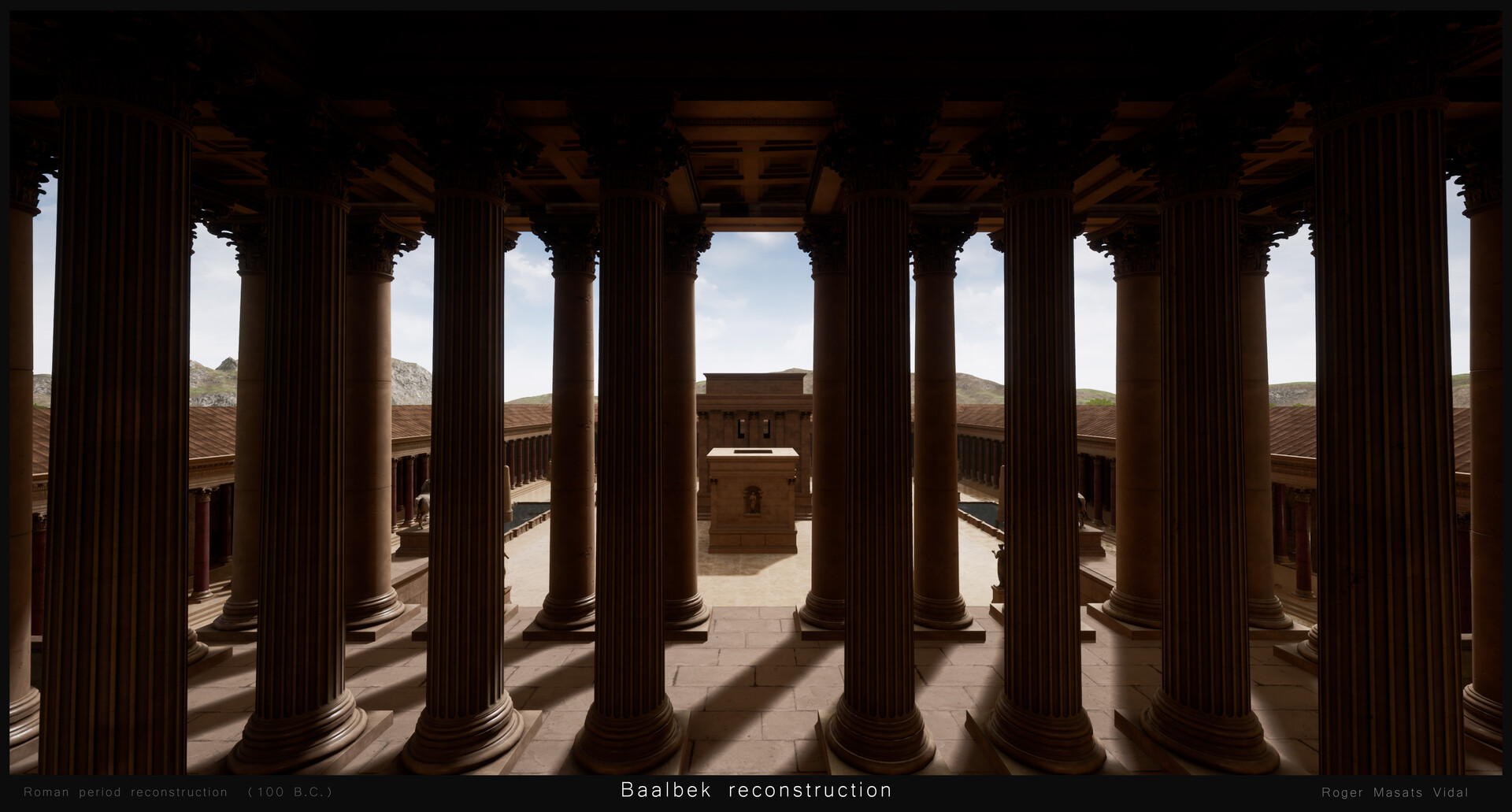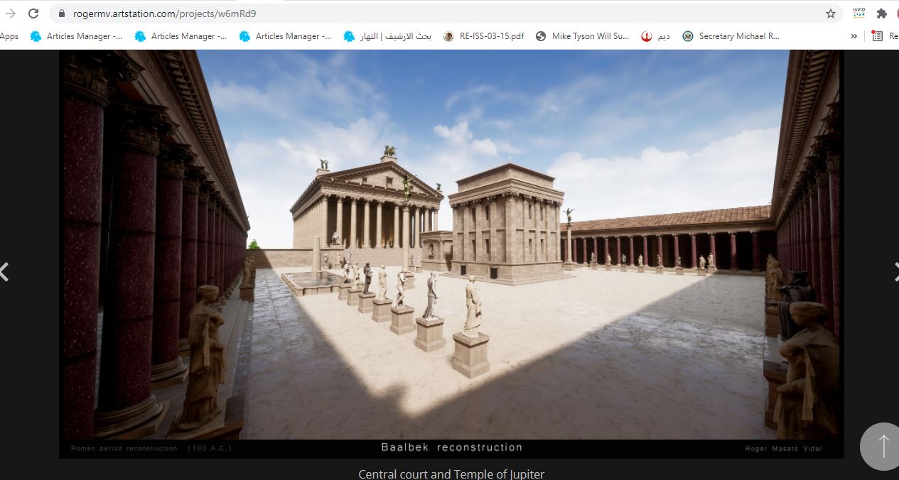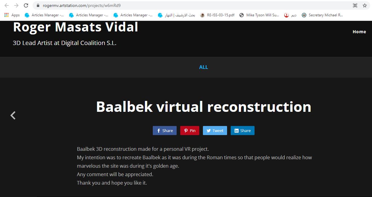 "إعادة بناء بعلبك بتقينة ثلاثي الأبعاد 3D، ضمن مشروع واقع افتراضي شخصي. نيتي ان أعيد بناء بعلبك كما كانت في العصر الروماني، كي يدرك الناس مدى روعة الموقع خلال عصره الذهبي... وأتمنى أن تنال الصور إعجابكم".
