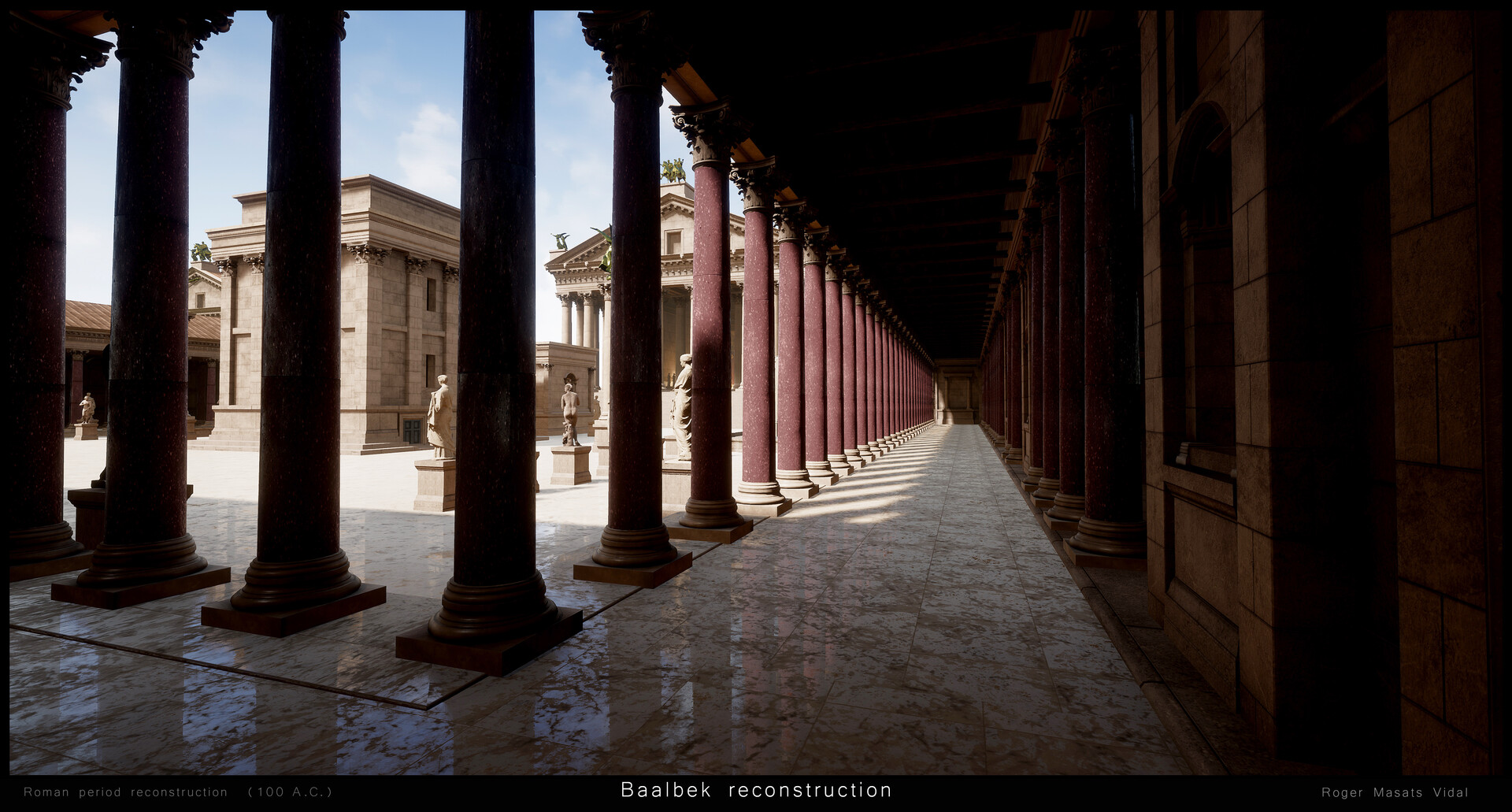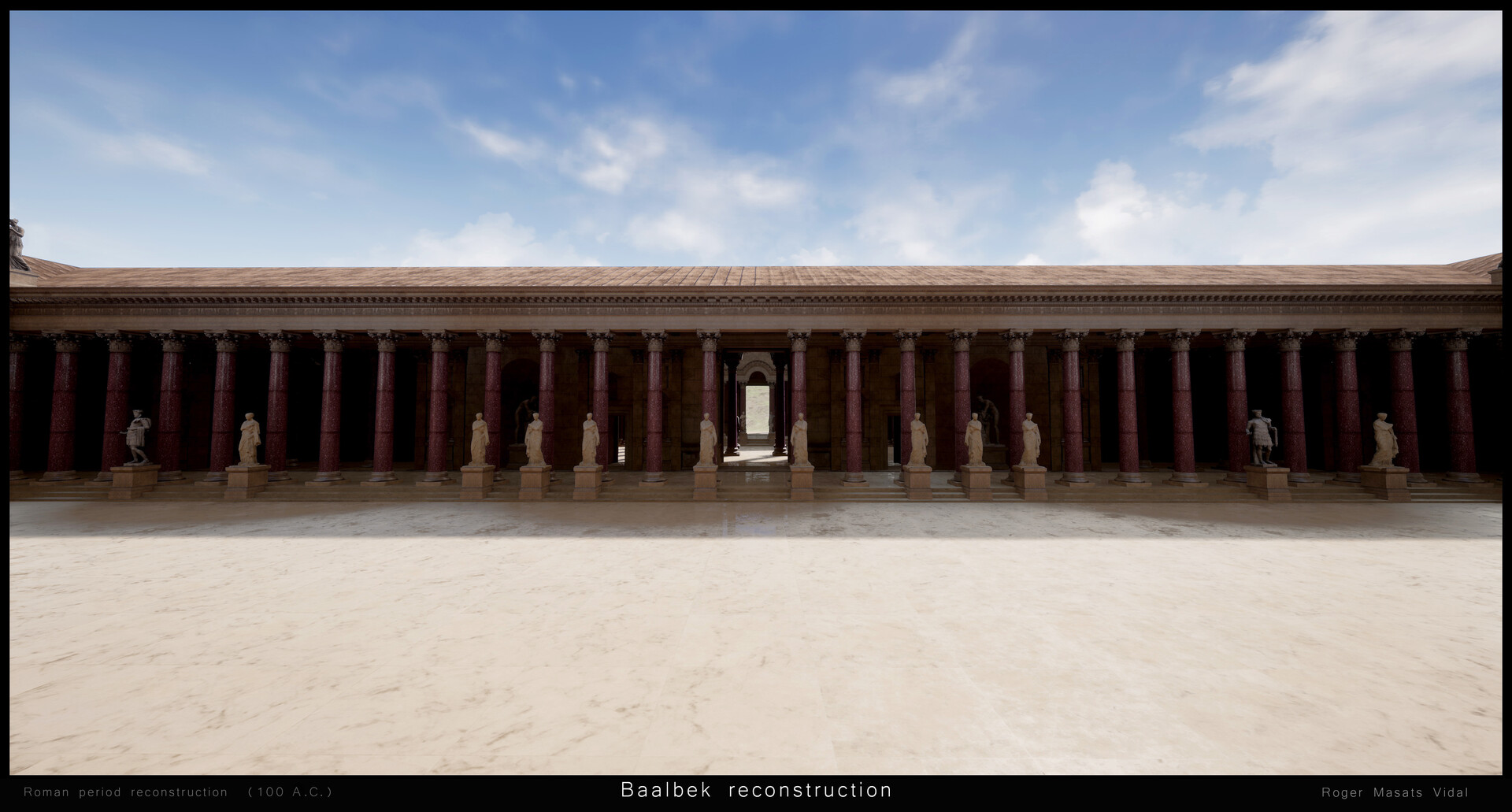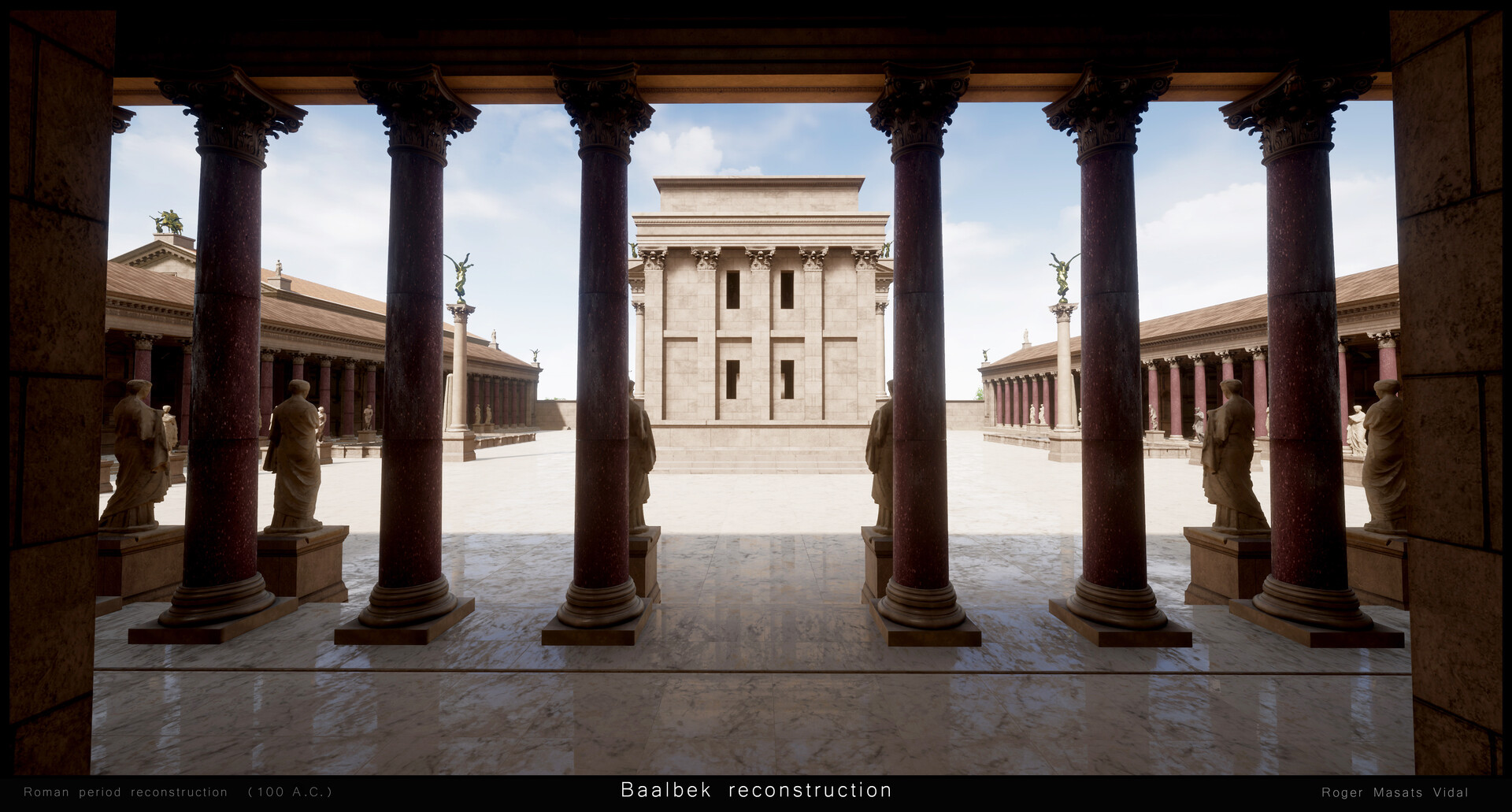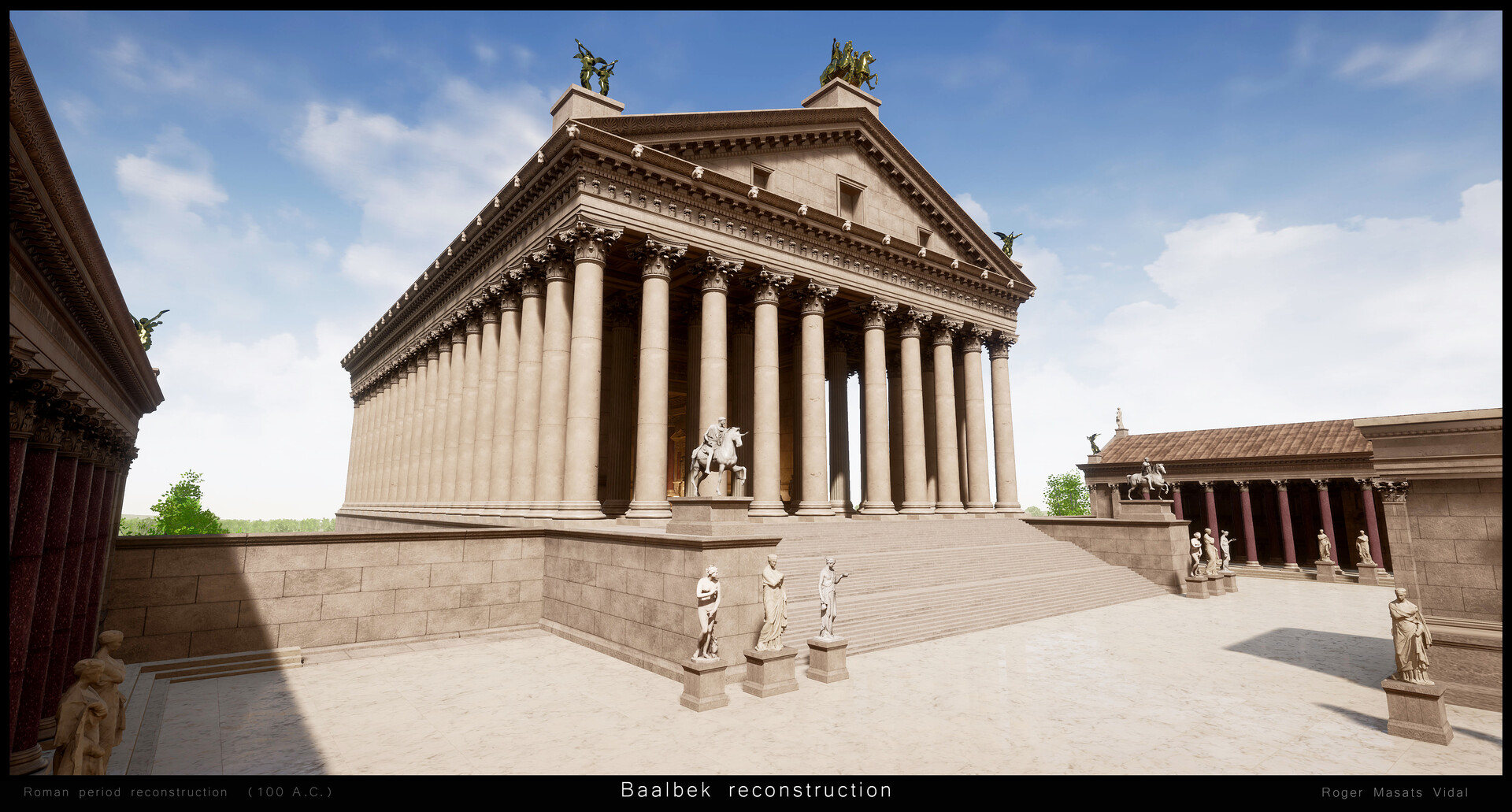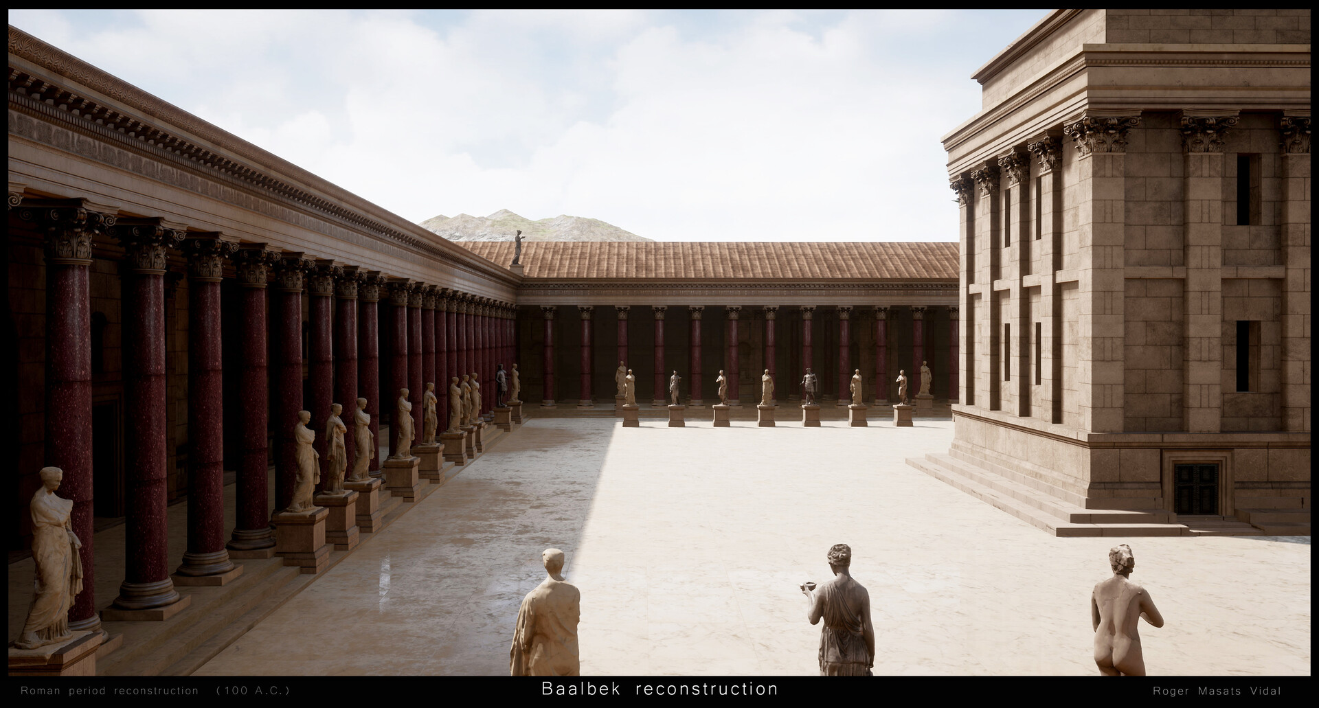 "إعادة بناء بعلبك بتقينة ثلاثي الأبعاد 3D، ضمن مشروع واقع افتراضي شخصي. نيتي ان أعيد بناء بعلبك كما كانت في العصر الروماني، كي يدرك الناس مدى روعة الموقع خلال عصره الذهبي... وأتمنى أن تنال الصور إعجابكم".