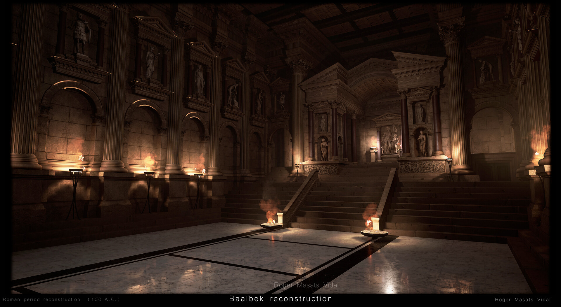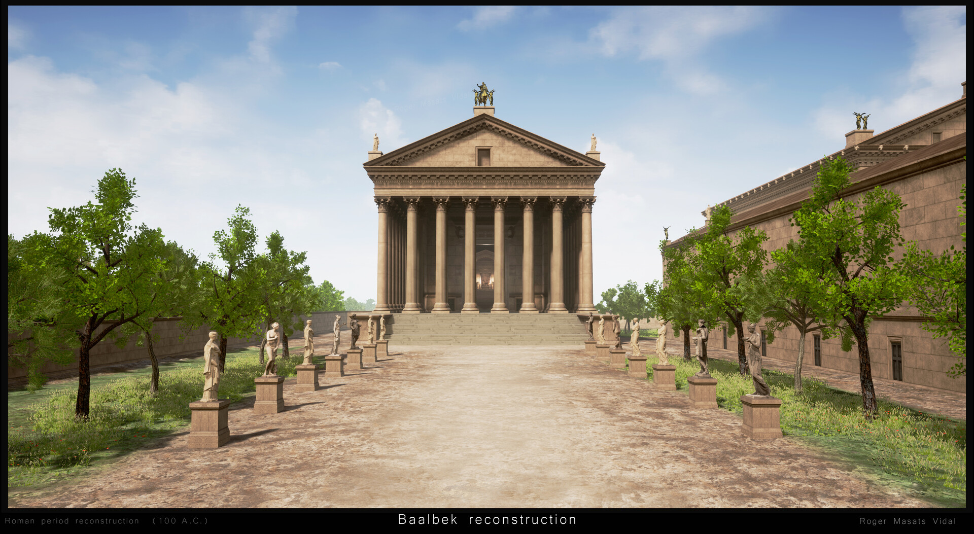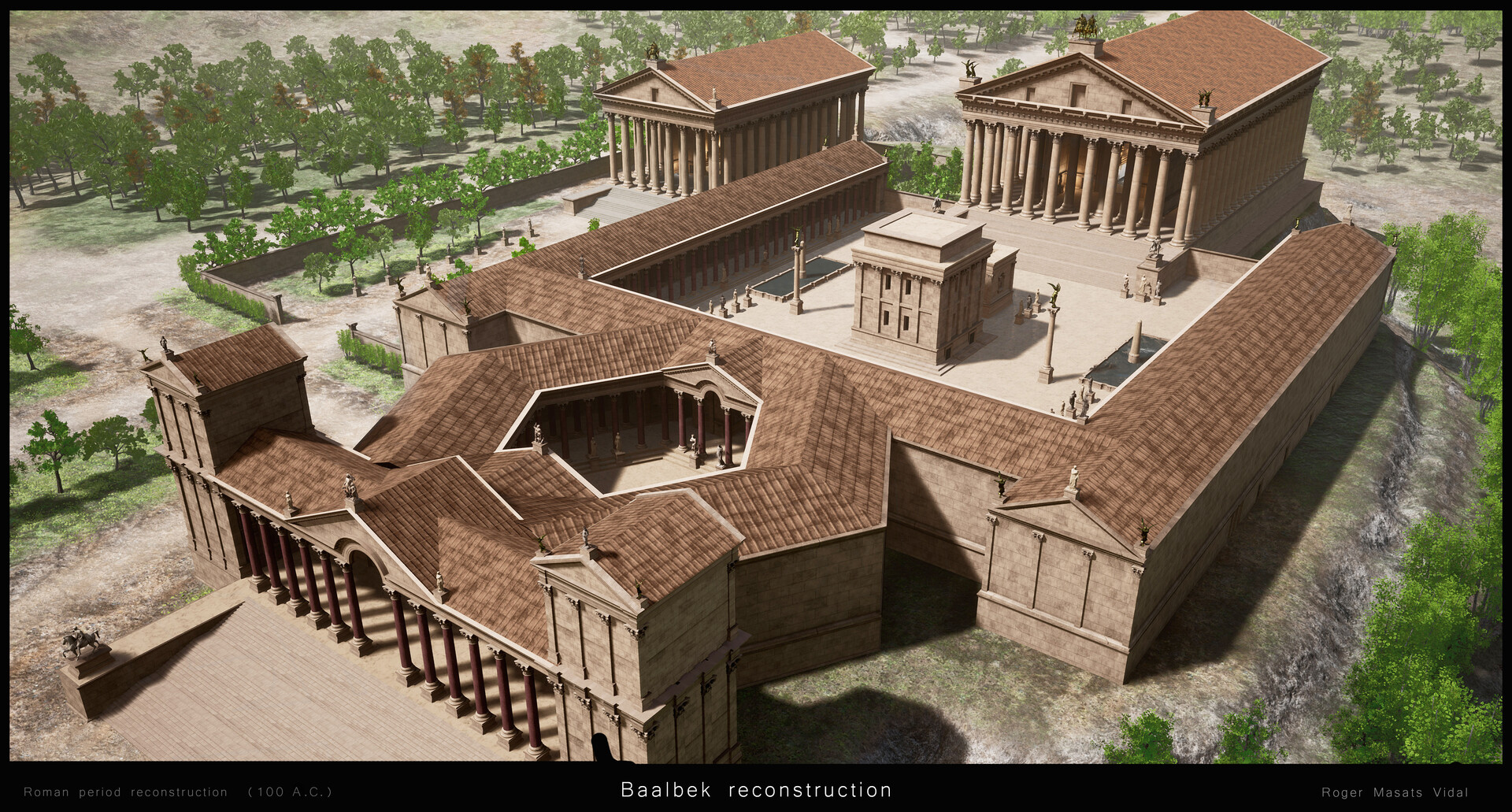 طوال أشهر، قرأ فيدال عن "بعلبك وتاريخها"، "لكنني لم أجد أي دراسات حديثة تظهر إعادة بناء دقيقة للموقع"، على ما قال. و"بعد دراسة دقيقة والكثير من البحث من خلال الكتب والصور واللوحات والمراجع الأخرى الموجودة في جميع أنحاء العالم حول الامبراطورية الرومانية، حاولت إعادة الحياة إلى بعلبك بأكثر الطرق دقة من الناحية التاريخية. لقد استخدمت تجربتي السابقة كفنان ثلاثي الأبعاد، وخبرتي في العمل جنبًا إلى جنب مع علماء الآثار، لإجراء عمليات إعادة البناء" لبعلبك.
