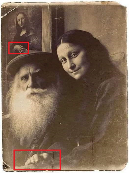 ثانيا، تحمل الصورة المتناقلة مؤشرات واضحة الى انها منشأة بواسطة برنامج ذكاء اصطناعي، ابرزها التشوهات في يد الموناليزا. فأصابع يدها تبدو مبتورة.