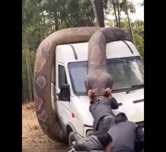 عملية الالتهام بدأت، وفقا للمشاهد. رجل قبض على رأسه ثعبان ضخم، بينما حاول أشخاص آخرون تحريره منه، عبر الشد برجليه. 7 ثوان فقط "مروعة"، وفقا للوصف. وقد تكثف التشارك في الفيديو أخيرا، عبر حسابات، عربية وأجنبية (هنا، هنا، هنا، هنا، هنا، هنا...)، ارفقته بتعليقات (من دون تدخل) مثل "مقطع متداول لثعبان ضخم للغاية في أحد الدول، ولا أحد يعرف أن كان حقيقي أم لا"، وايضا "مستحيل، ماذا؟".