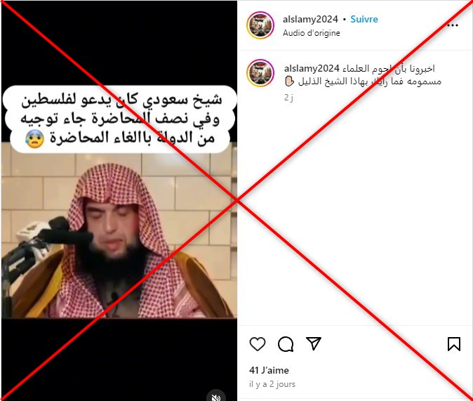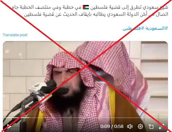 هذا الفيديو ليس لإيقاف محاضرة دينيّة في السعوديّة بسبب دعاء الشيخ للفلسطينيّين FactCheck#