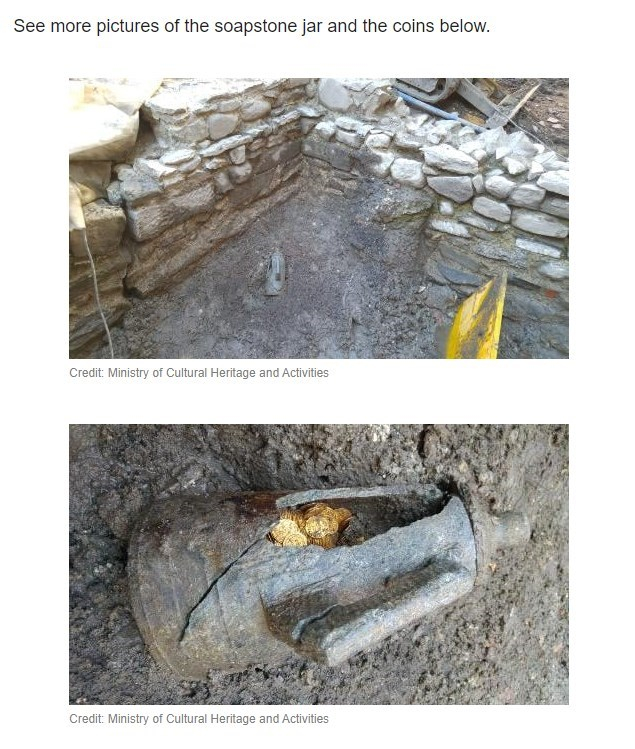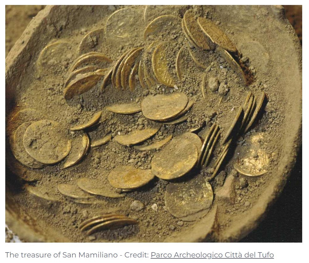 فالصورة الأولى تعود لكنز من 498 قطعة ذهبيّة تم اكتشافه في قرية سوفاتا القديمة بإيطاليا.