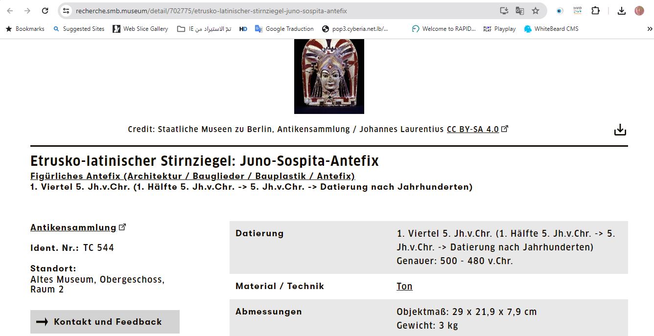 الصورة التي يزعم انها تعود للإلهة فاتيكا، تظهر في الواقع قطعة أثرية من الفخار لرأس جونو سوسبيتا Juno Sospita، الإلهة الرومانية القديمة الحامية. و"هي تعود الى نحو 500- 480 ق.م"، وفقا لما ينشر عنها موقع Staatliche Museen zu Berlin بألمانيا (هنا)، ويعرضها متحف ألتس Altes Museum في برلين (هنا، هنا، هنا، هنا، هنا...).