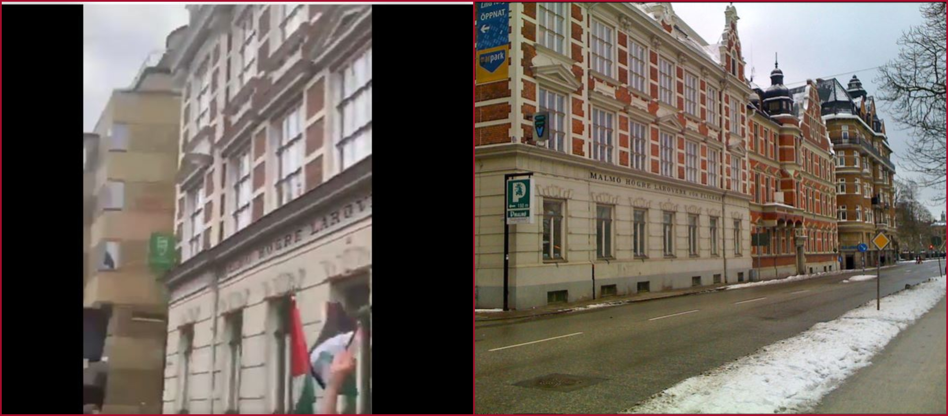 فاذا شاهدتم الفيديو ببطء، ستقرأون عبارة Hogre laroverk f lickor قرب المبنى الذي أطل منه الرجل في الفيديو (ادناه). كلمات مفاتيح توصلنا الى صورة أوضح في موقع فليكر (هنا) لذلك الموقع، لنقرأ ما عجزنا عنه في الفيديو: Mamlo Hogre läroverk for flickor (هنا، هنا، هنا ايضا).