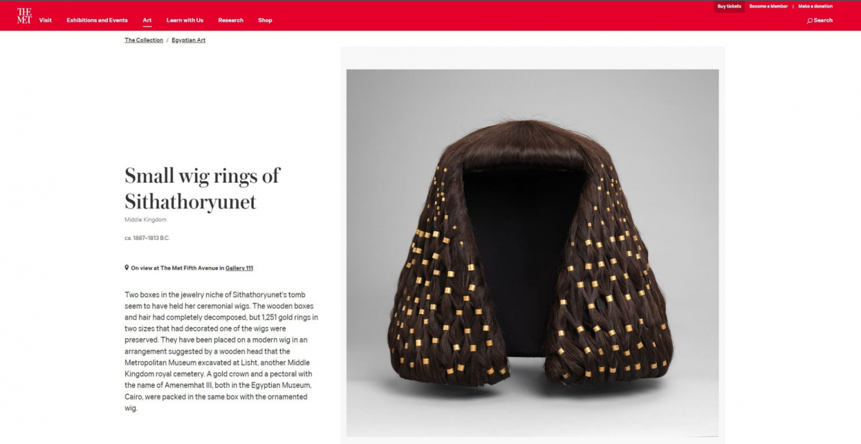 يرشد البحث العكسي عن صور الشعر المستعار إلى الصفحة الرسمية لمتحف المتروبوليتان الأميركي، التي خصّصت للشعر المستعار زاوية خاصّة.