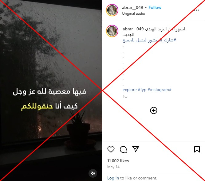 تتضمّن المنشورات مقطع فيديو يُسمع فيه تعليقٌ صوتيّ يحذّر من معاني الأغنية المرافقة لما بات يعرف على مواقع التواصل بـ"الترند الهندي". وجاء في التعليق أنّ كلمات هذه الأغنية تتضمّن "معصيةً لله" وهي موجّهة من رجلٍ يقول لزوجته إنّه "يعبدها" وإنه "يسجد لها".
