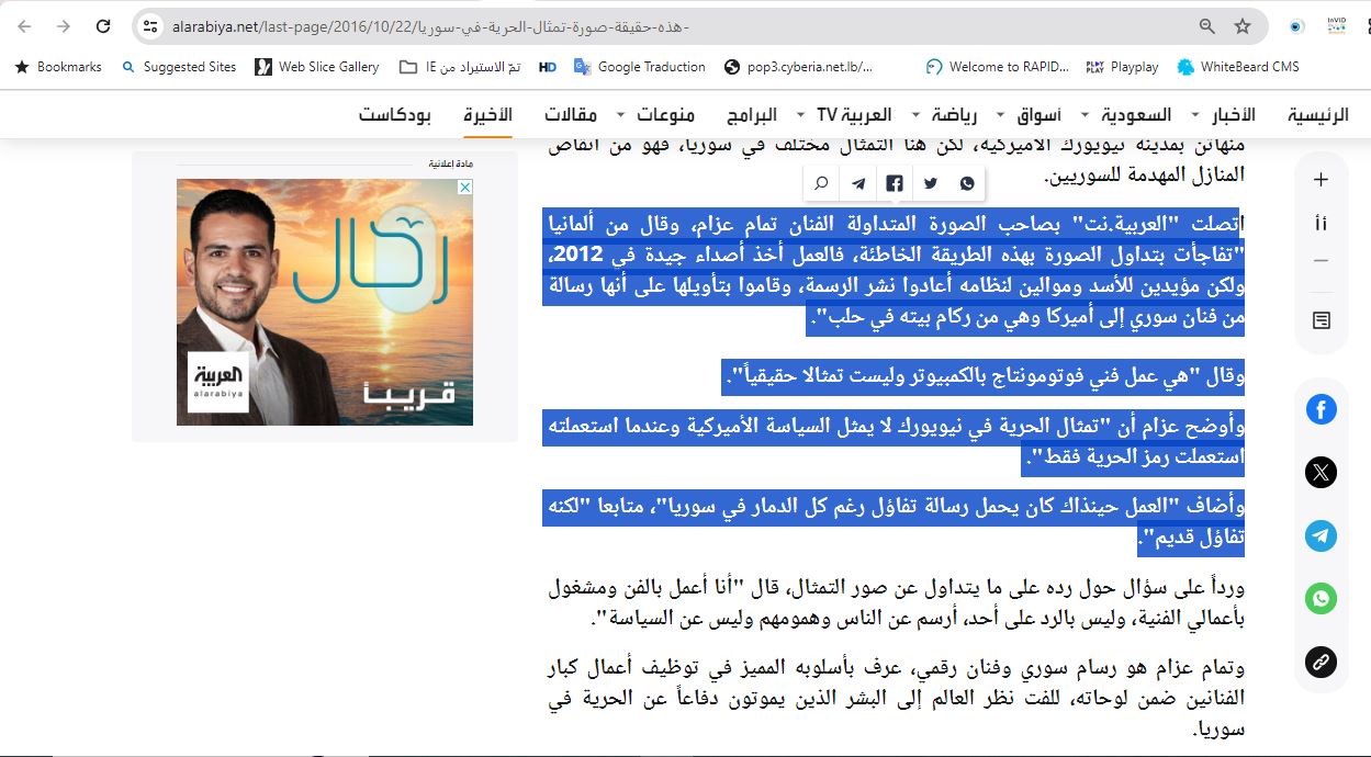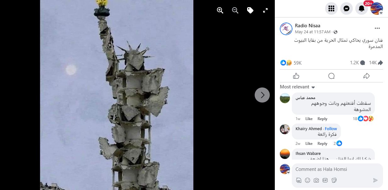 "فنان سوري يصنع تمثال الحريّة من بقايا البيوت المدمّرة"؟ إليكم الحقيقة FactCheck#