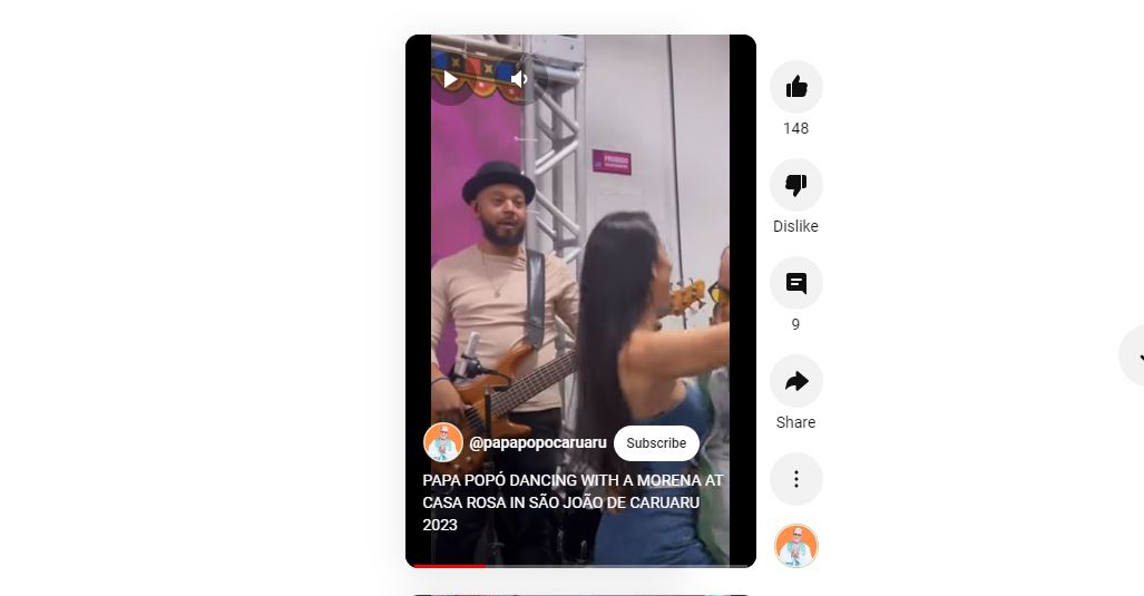 كلمات مفاتيح توصلنا فورا الى حسابي الفنان إيناسيو فالكاو Inacio Falcão في انستغرام papapopodoasfalto@، وفي يوتيوب Papa Popó Caruaru، واللذين نشرا الفيديو في 25 حزيران 2023 (هنا)، وفي 29 تشرين الثاني 2023 (هنا)، مع تعليق: "بابا بوبو يرقص مع مورينا في كاسا روزا في ساو جواو دي كاروارو 2023. حقوق الفيديو: ميكايلا نونيس (هنا)".