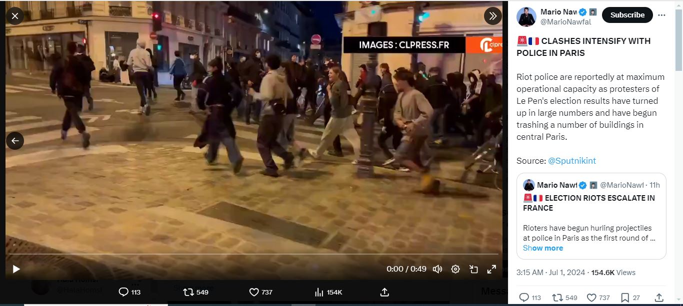 "مشاهد لاحتجاجات في فرنسا بعد فوز اليمين المتطرّف بالدورة الأولى من الانتخابات التشريعيّة"؟ إليكم الحقيقة FactCheck#