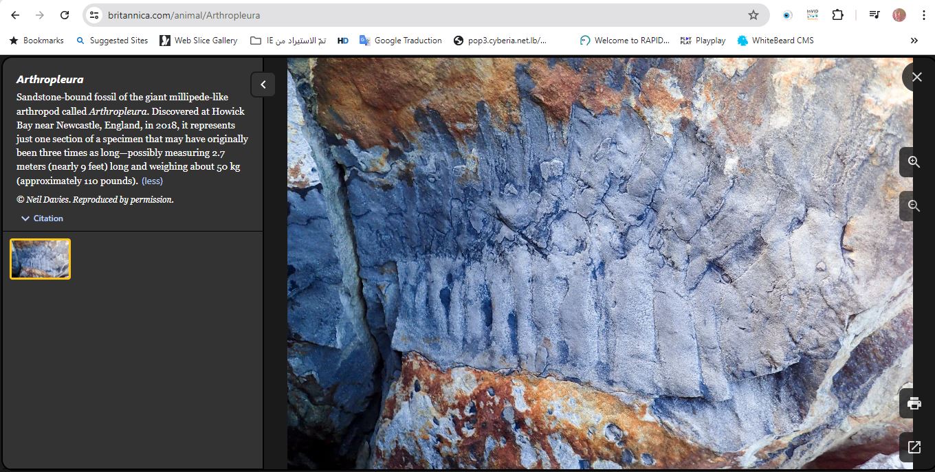 يشار الى ان الأرثروبيليورا Arthropleura التي تكلم عليها IXITimmyIXI@ "جنس من المفصليات الكبيرة جدا المنقرضة، والتي تشبه الديدان الألفية، وقد ازدهرت من عصر الفيسان في الحقبة الكربونية إلى العصر الأسيلي في الحقبة البرمية (منذ 346.7 مليون إلى 293.52 مليون سنة مضت)، ومعروفة بهياكلها الخارجية المتحجرة"، وفقا لموسوعة "بريتانيكا" (هنا).