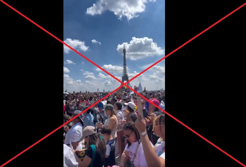 الحقيقة: الفيديو قديم، اذ يعود الى 25 ايار 2024. وهو مصوّر خلال انعقاد مسيرة من اجل يسوع Marche Pour Jésus، وهو حدث مسيحي سنوي، قرب برج ايفل في باريس. FactCheck#