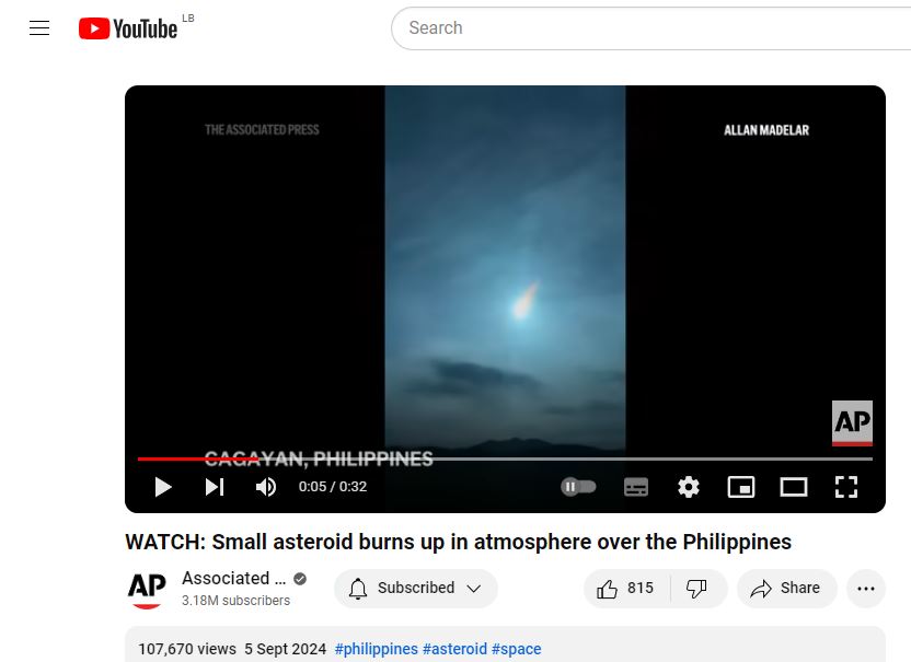 الحقيقة: الفيديو يظهر لحظة احتراق كويكب صغير متجه إلى الأرض في كرة نارية مذهلة فوق الفيليبين، ليل الاربعاء 4 ايلول 2024. FactCheck#