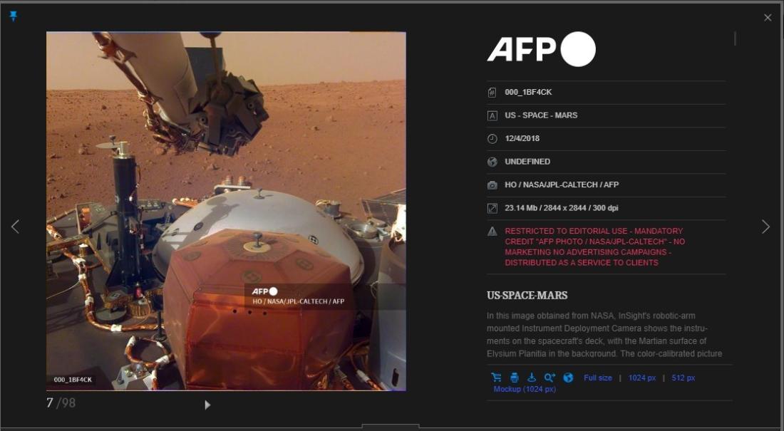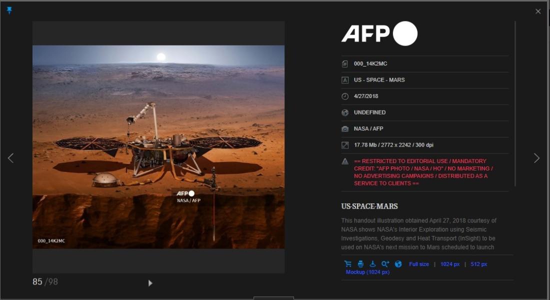 فهذه الصورة وزّعتها وكالة فرانس برس عام 2018، نقلاً عن وكالة ناسا، قائلة بوضوح إنّها مجرّد "رسم" نشرته وكالة ناسا قبل انطلاق مهمّة "إنسايت" غير المأهولة إلى كوكب المريخ.