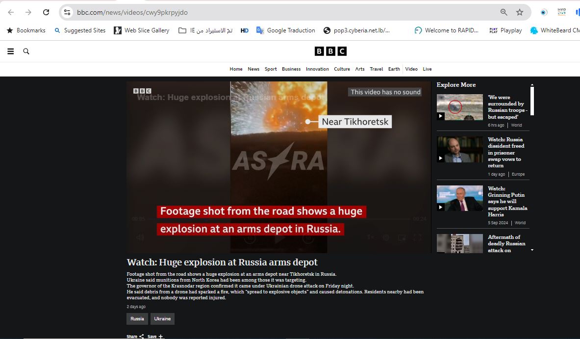 النتيجة: اذاً، لا صحة للمزاعم ان الفيديو يظهر "لحظة وقوع غارة اسرائيلية عنيفة في جنوب لبنان". في الواقع، الفيديو الذي تعود آثاره الى 21 ايلول 2024، يظهر تدمير مستودع ذخيرة روسي في تيخورتسك بمنطقة كراسنودار الروسية نتيجة هجوم أوكراني، وفقا لما تم تداوله. والصوت الذي يُسمَع في الفيديو المتناقل مركّب.