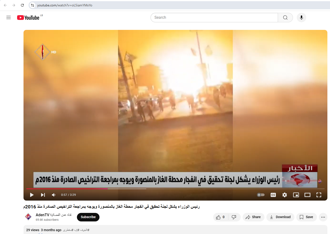 وبالفعل، وقع انفجار في محطة غاز بالمنصورة بعدن في اليمن، في 30 آب 2024، وفقا لما ارشفته مواقع اخبارية عدة يومذاك.
