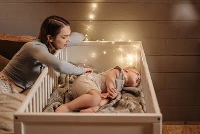 يجب الفصل بين نوم الطفل في السرير نفسه مع والديه، وفي سرير منفصل عنهما في الغرفة نفسها. ومن غير المحبَّذ أن يتشارك الطفل السرير مع والديه مهما كان عمره، وفق دراسات عديدة، إذ أوّل ما يُخاف منه هو الموت المفاجئ لحديثي الولادة أو الاختناق، إذا ما كانوا في سرير واحد مع أهاليهم، إضافة إلى صحة الطفل لناحيةحساسية جلده وإمكانية إصابته بأي فيروس.