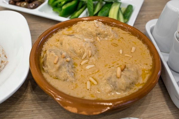 الخطوة 3: نستمرّ بالتحريك حتى تبدأ نقاط الزيت بالظهور على سطح الخليط ثم نضيف حبّات الكبّة ونقدّمها باردة.