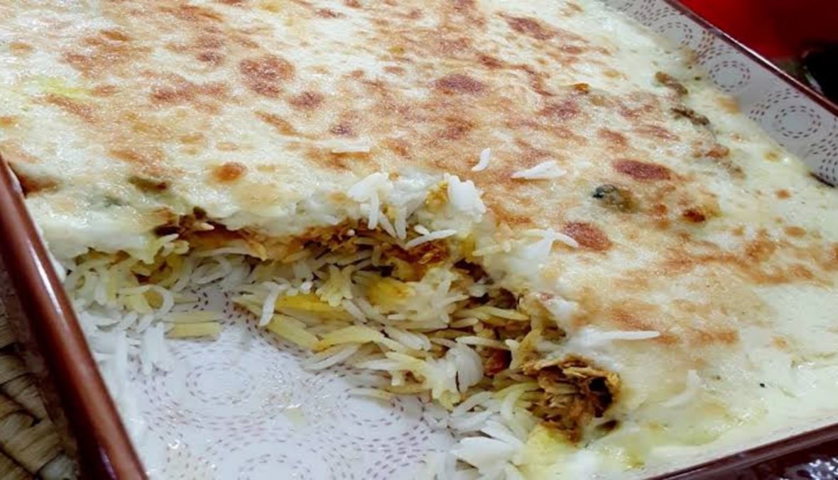 - في صينية خبز ضعوا طبقة من الرز ثم أخرى من خليط الدجاج، ثم كرروا الأمر، ثم أضيفوا البشاميل وضعوه في الفرن لمدة 7 دقائق حتى يحمر الوجه.