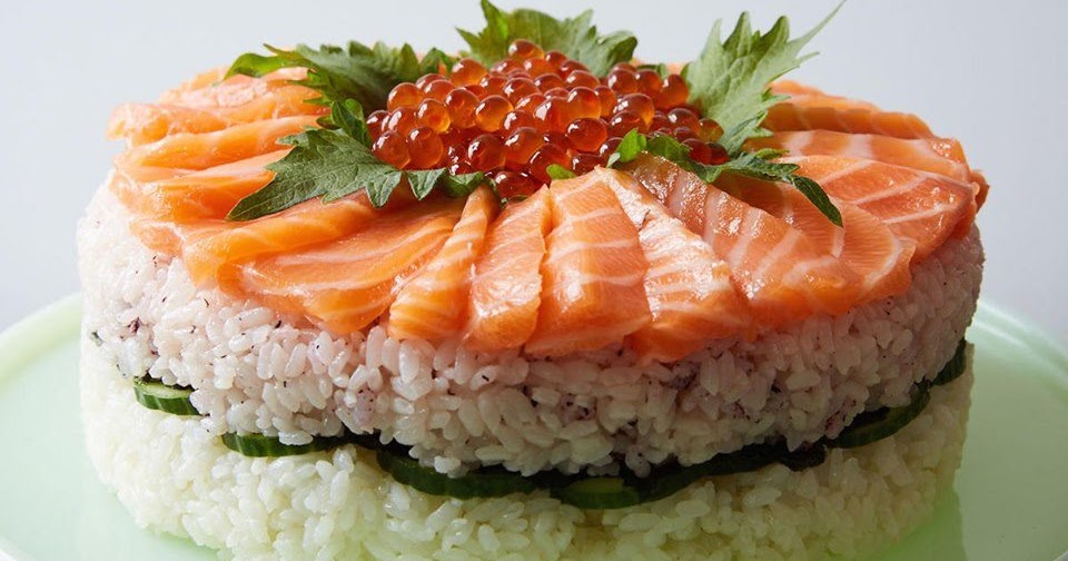- الخطوة 1: في صينيّة نضع الـ"كلينك فيلم" ثم نضيف شرائح السومو المدخّن ونرصّ فوقها الأرزّ ثمّ طبقة من بديل الجبنة الكريميّة.