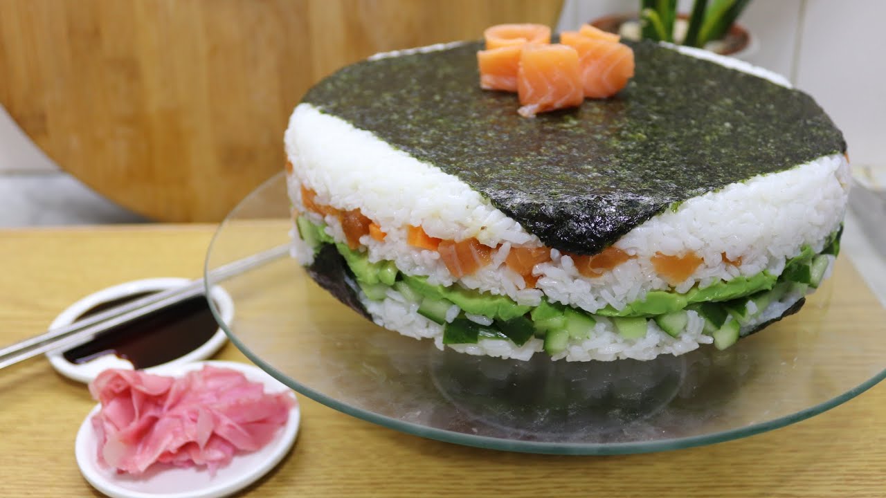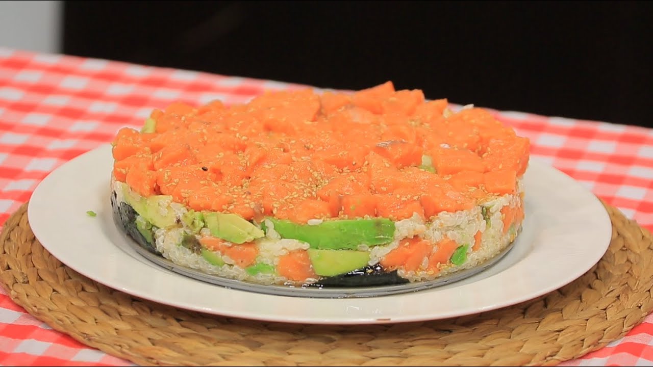 - الخطوة 2: نمزج الجزر المبشور مع المايونيز ثمّ نضع طبقة منه فوق الجبنة ونرشّ عليها السمسم ونضيف طبقة من الخيار المبروش مع الأفوكا ثم طبقة أخيرة من أرزّ السوشي.