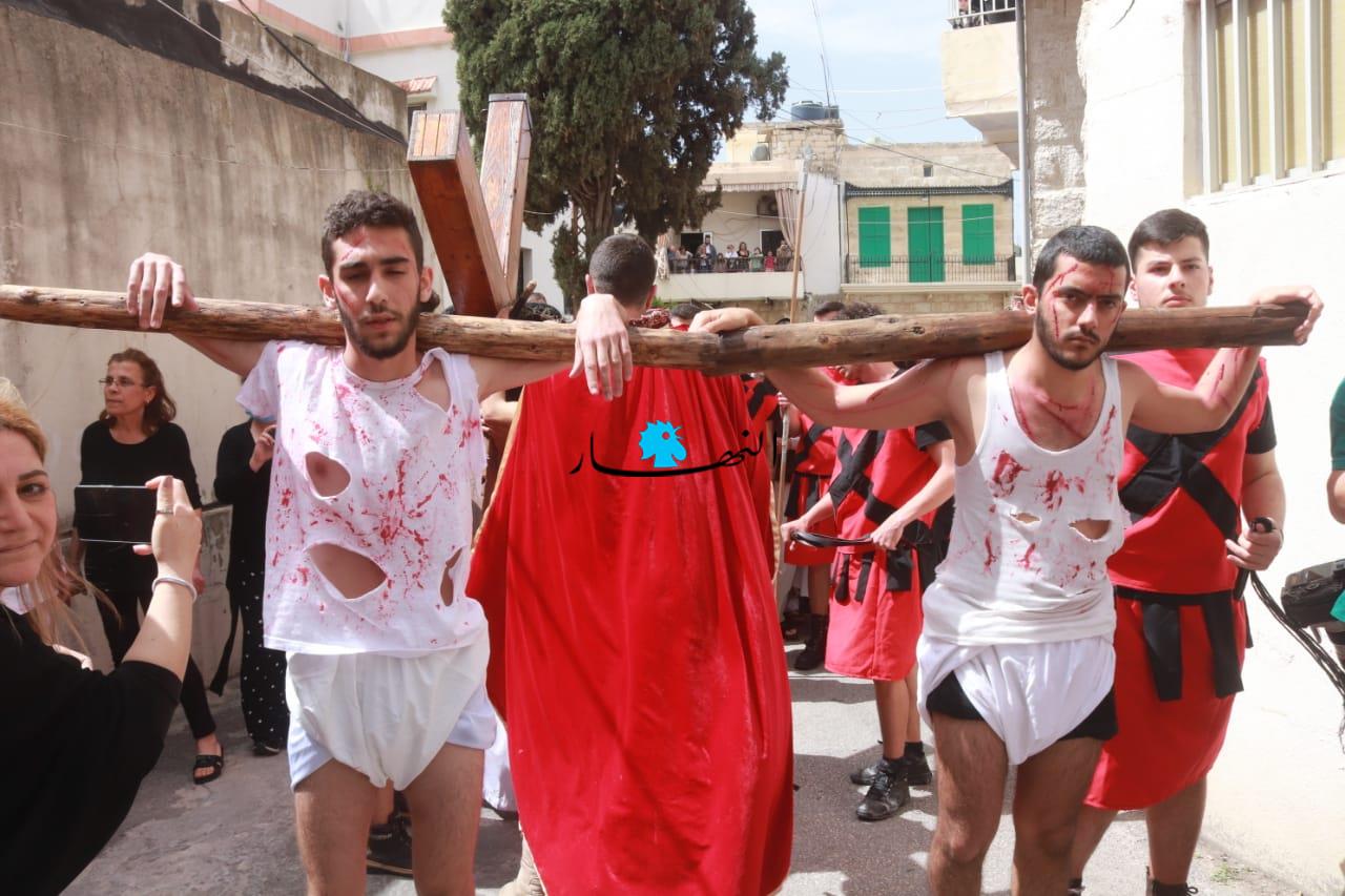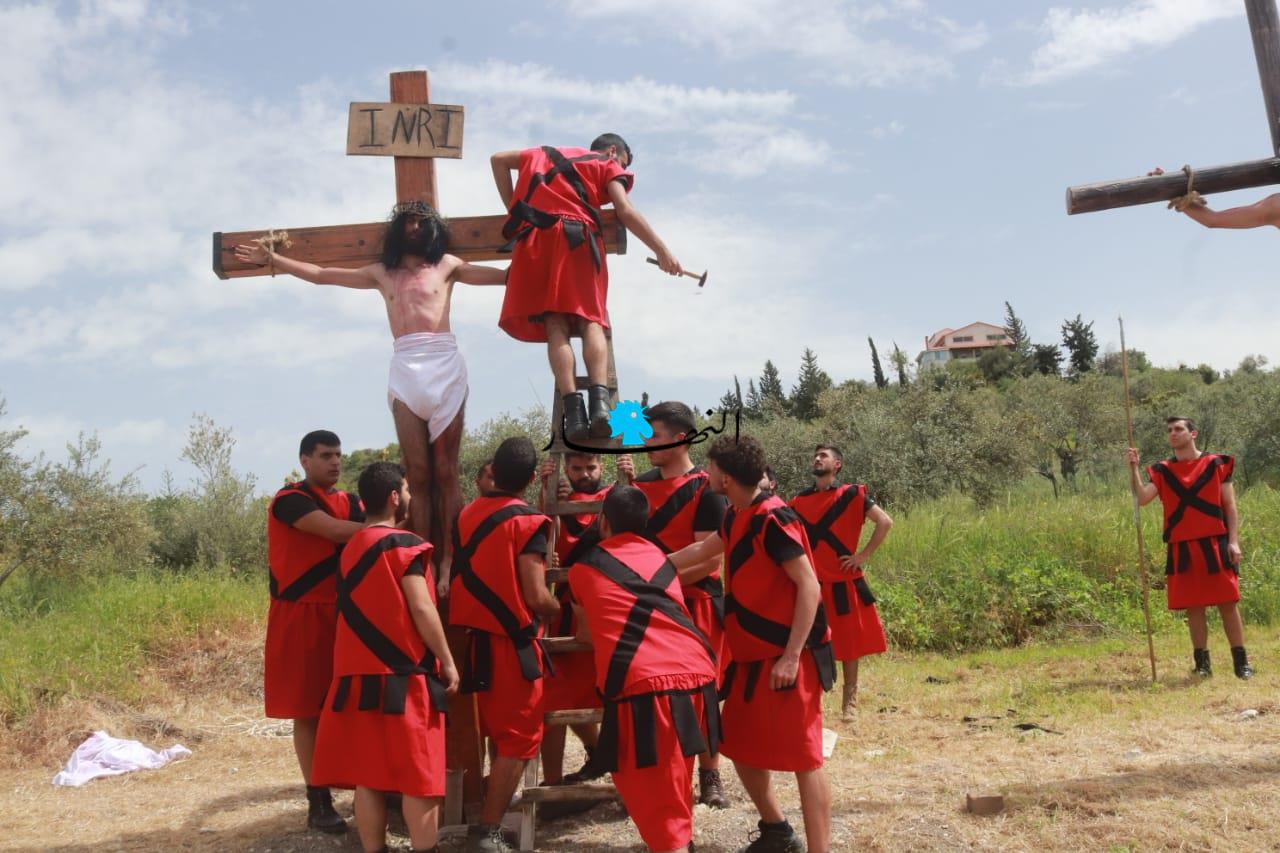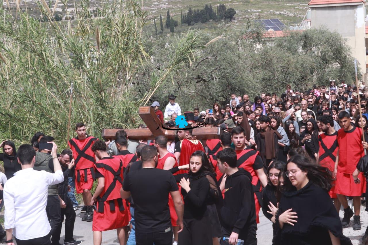 القرية أعادت تمثيل محاكمة السيد المسيح وجلده وصولاً إلى صلبه (أحمد منتش).