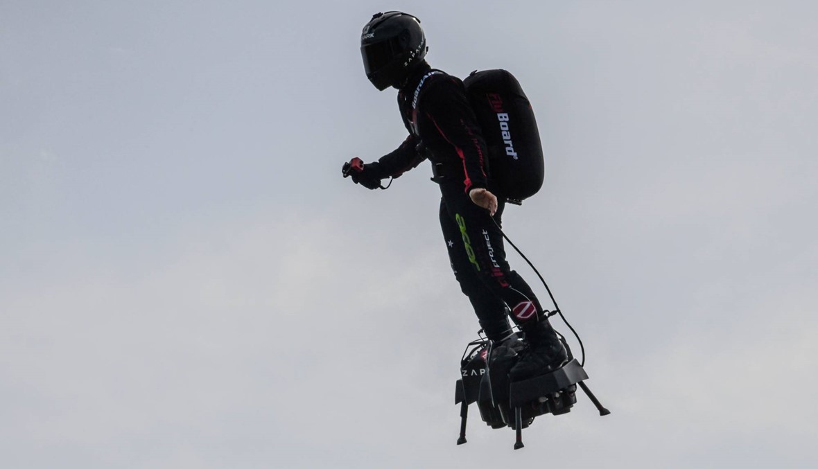 وهذا اللوح الطائر الذي يعمل بالكيروسين المخزن في حقيبة ظهر، مزود بخمسة محركات نفاثة مصغرة تتيح له التحليق بسرعة تصل إلى 190 كيلومترا في الساعة في الجو، مع استقلالية حركية لنحو عشر دقائق.