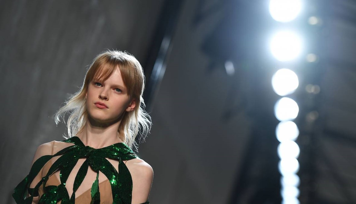 واستعان المصمم بالموسلين والحرير والكريب وأدخل الجلد الخفيف الى مجموعته الصيفية. ورأينا ومضات من الأخضر ولاسيما الفستان المقطّع باللايزر على قاعدة من القماش النيود. وتميّزت الأحذية بموديل T STRAP الأنثوي بكعبه العالي النيود. وجاءت تسريحة العارضات من نوع WET LOOK، والمكياج بلون نيود مركزاً على الظلال الترابية الخفيفة والسومون.