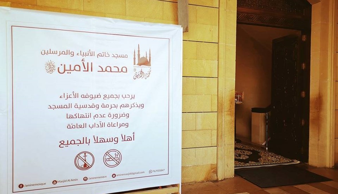 أمام هذه العينات، أصدرت لجنة جامع محمد الأمين لافتة أمام باب الجامع جاء فيها: "جامع الأمين يرحّب بجميع ضيوفه الأعزّاء ويذكّرهم بحرمة وقدسية المسجد وضرورة عدم انتهاكها ومراعاة الآداب العامّة. أهلاً وسهلاً". ووضع تحت هذه العبارة ممنوع التدخين والنرجيلة.